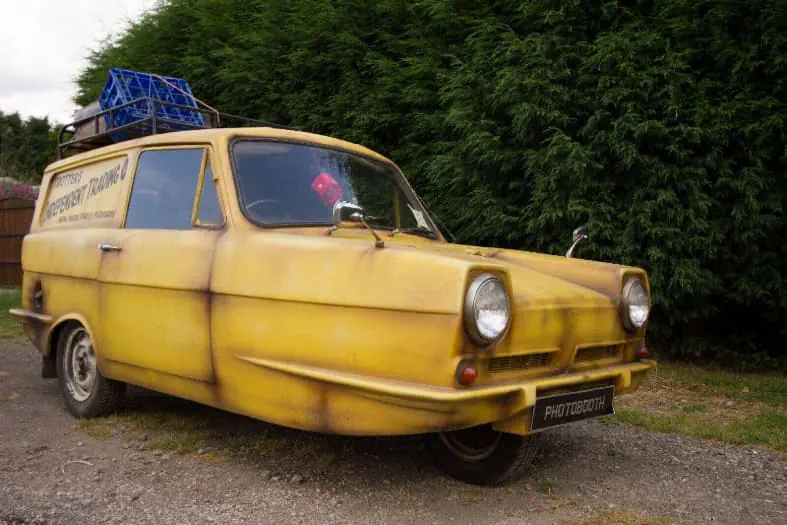 We have a number of different iconic and quirky vehicles. None attract as much attention as our Del Boy Trotter 3 wheeled van. Driving along the road you will suddenly realise that no one has overtaken you for a while. When you look in the mirror, a car will be level with the trailer containing the van, taking photos. Once they start to pass us and get level with our towing vehicle, they look disappointed. I think they expect David Jason to be driving.