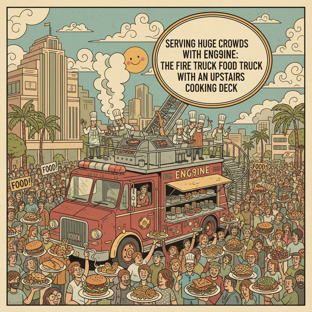 Serving Huge Crowds with ENG9INE: The Fire Truck Food Truck with an Upstairs Cooking Deck