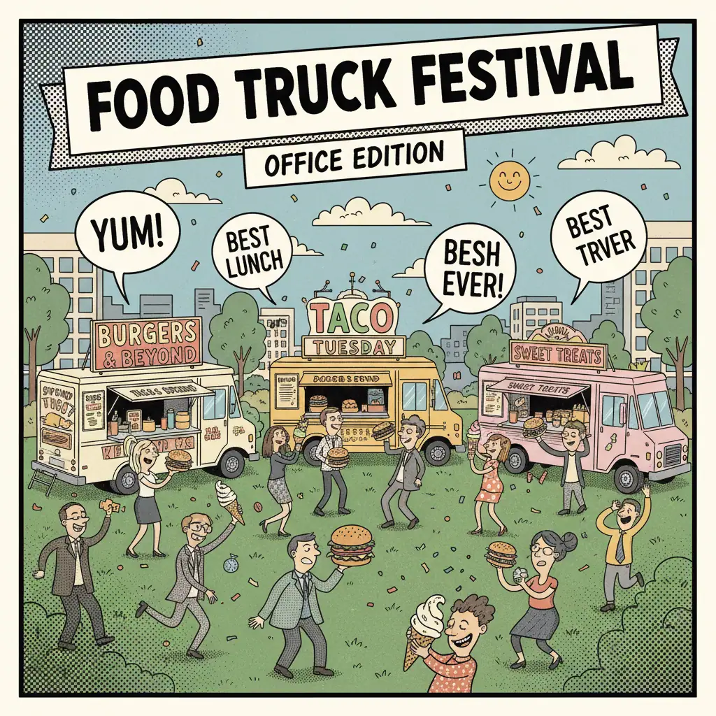Ready to turn your office lunches into the talk of the town? The food truck revolution is waiting, and trust us – once you go festival-style, you’ll never go back to boring brown bags again. Your taste buds, your team, and your company culture will thank you for it!