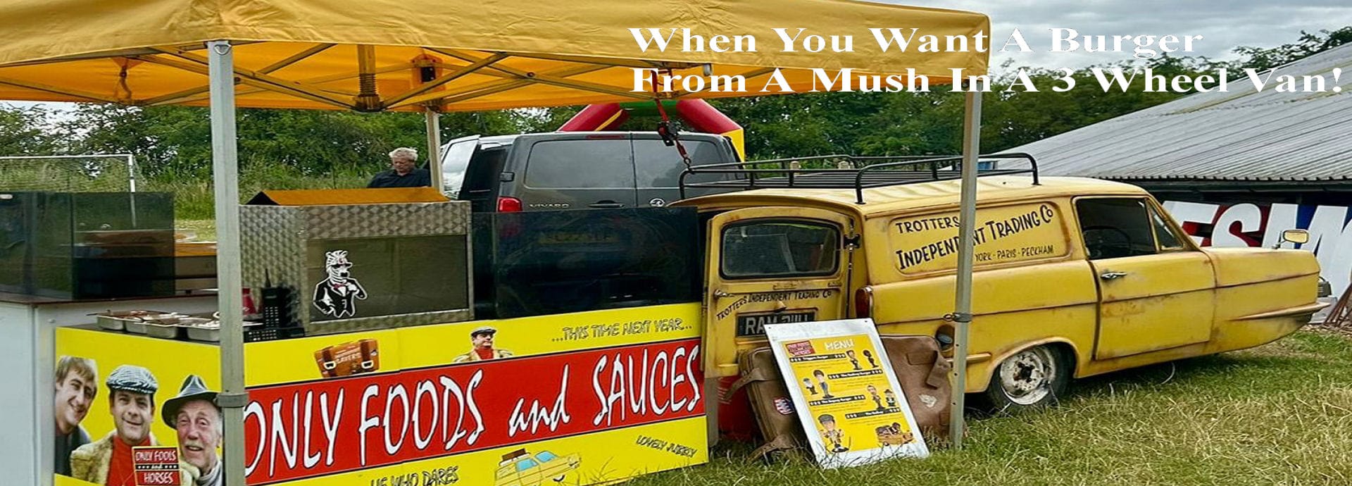 Alright, you know what they say – he who dares, wins! And we’re daring to bring you the most cushty street food burger van experience this side of Peckham. Picture this: a gleaming yellow three-wheeler rolling up to your event, complete with that unmistakable Trotters Independent Trading Company swagger. This time next year, your guests will still be talking about it!