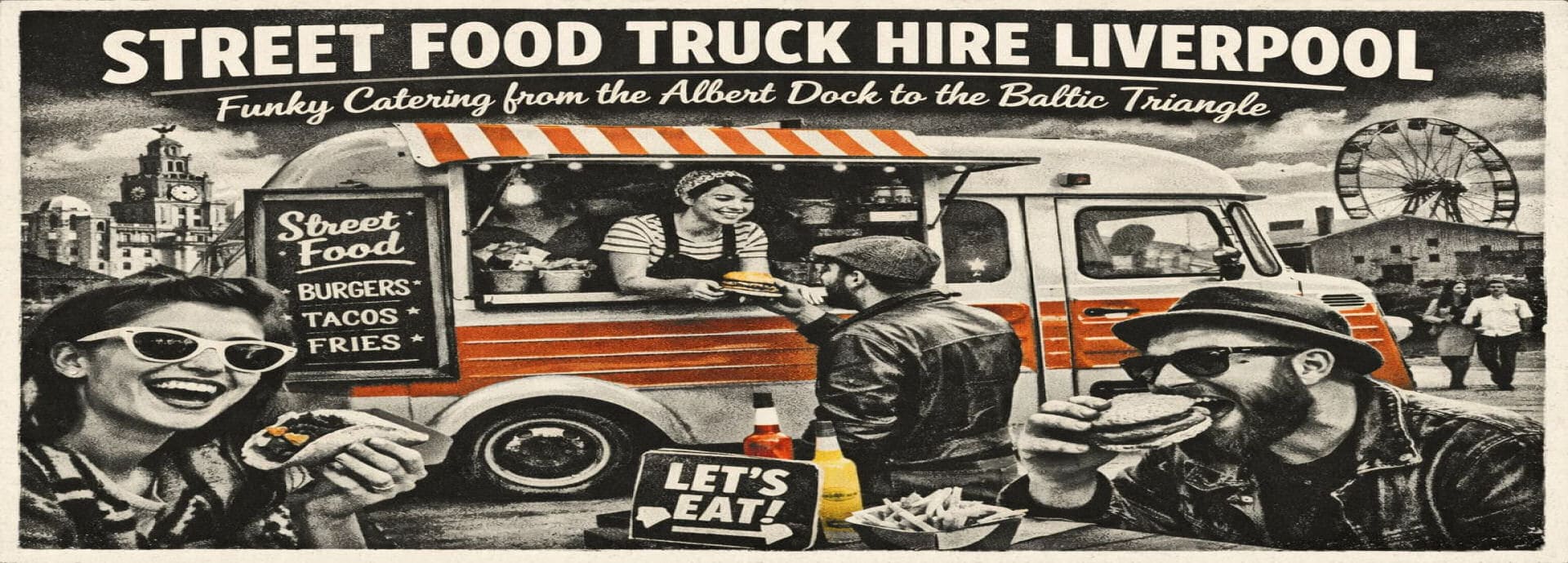 Imagine the scene: the sun is setting over the Liver Building, the docks are glowing, and the tantalizing scent of sizzling gourmet burgers and spicy tacos is wafting through the air. That’s the magic we bring. We’re ready to inject that famous Scouse spirit into every bite, ensuring your guests aren’t just fed, but genuinely entertained.