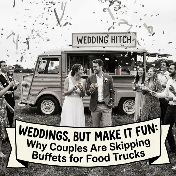Consider this: your wedding guests aren’t standing around awkwardly by a lukewarm buffet, picking at soggy canapés. Instead, they’re chatting excitedly in the golden evening light, queuing up at a vibrant food truck where the tantalizing scent of fresh-grilled burgers and sizzling street food fills the air. Welcome to 2025’s hottest wedding trend, and honestly? It’s about time.